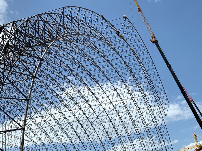 (2)网架加工前应对现场尺寸进行复测,确认无误后方可进行加工、安装;网架制作、运输、安装应遵守《空间网格结构技术规程》JGJ7-2010、《钢网架邵武螺栓球节点》JG/T 10-2009、《钢网架邵武螺栓球节点用高强度螺栓》 GB/T 16939-2016、《邵武钢结构邵武工程邵武施工规范》 GB50755-2012、《邵武钢结构邵武工程施工质量验收标准》 GB50205-2020。